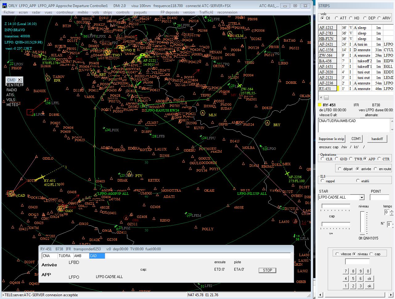 Simulateur de contrôle aérien, qui permet de visualiser et de suivre sur un ou plusieurs écrans, les vols virtuels effectués sur un réseau de simulateurs « FSX/P3D».